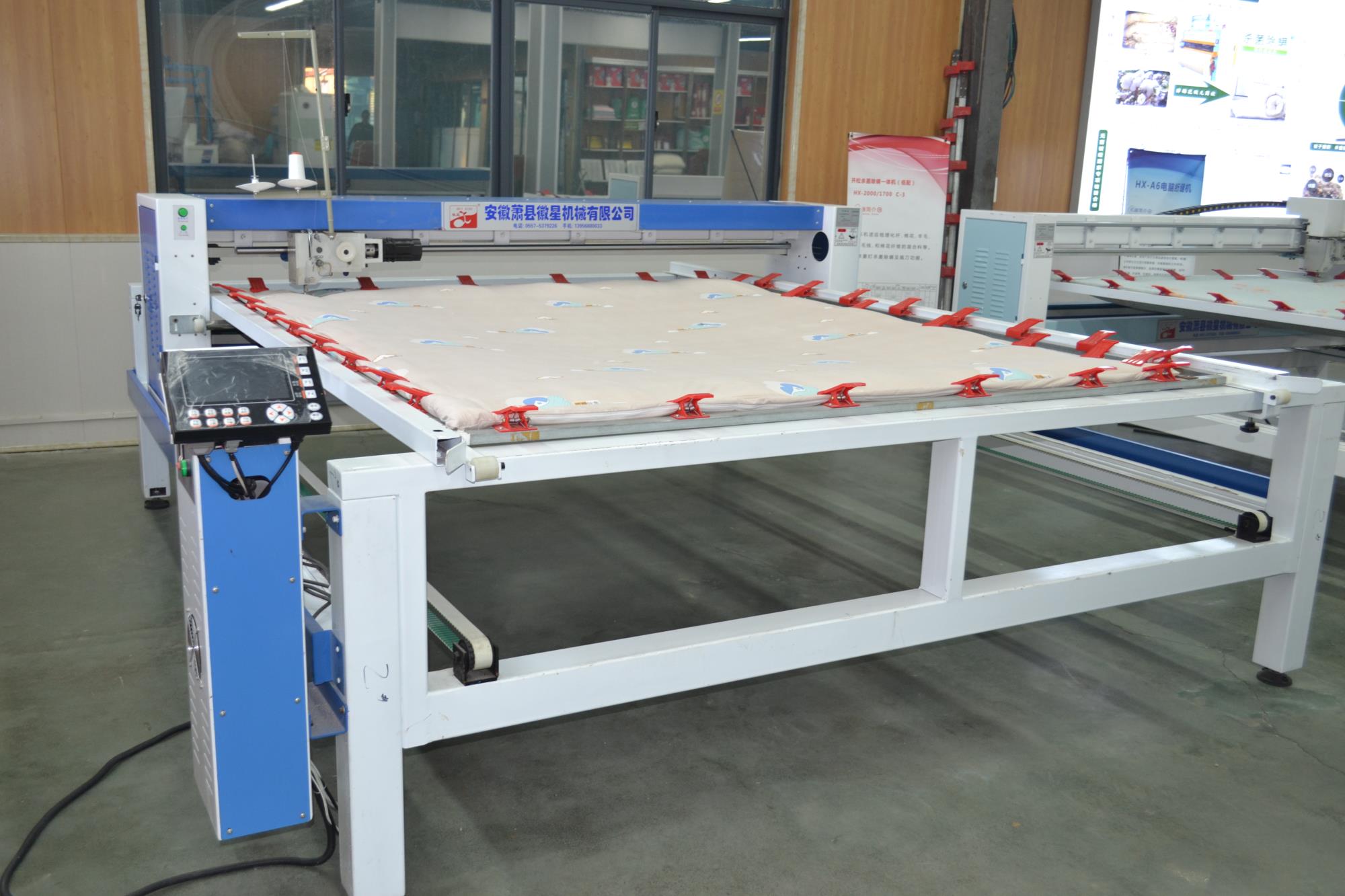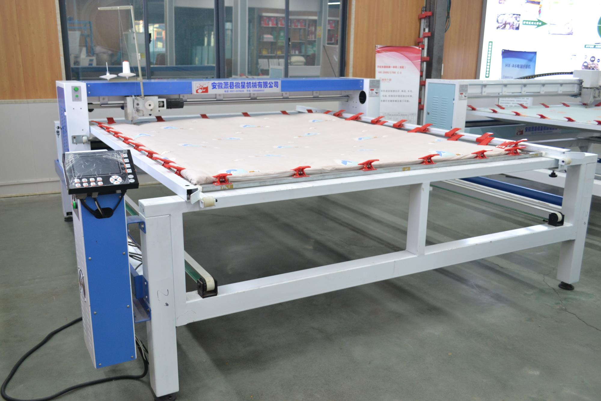 產品簡介:1.移動線路全部采用拖鏈裝置,設備整潔。 2.斷線檢查,面線段線自動停機,工作燈,穿線更方便。 3.四條同步皮短傳動,絎縫精度高。 4.高一規格和厚度的炫彩,確保了設備運行的穩定和吃厚度。 5.采用三相混合式步進電機,噪音接近無聲。 6.液晶顯示器,小控制柜,占地小(可選超小型控制柜) 7.配備新一代絎縫機專用電腦,穩定可靠,性能優良。 8.全新控制系統,內部實時檢測,確保不拉壞被子。 9.LED高亮度工作燈,夜間作業穿線更加安全方便。 10.電腦、電機出現故障自動停機,同時電腦畫面顯示故障內容。 11.電腦采用DST花樣打板系統,自帶幾百常用花型。"