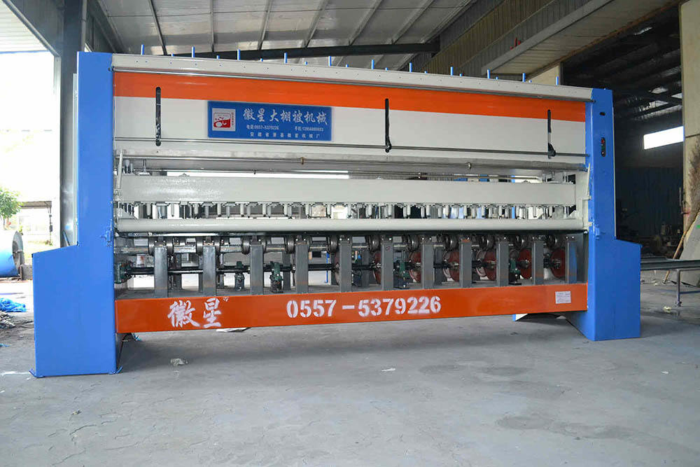 產品簡介:保溫被機是專門生產大棚保溫被的一種機器。理想的保溫被應具有傳熱系數小,保溫性好,重量適中,易于卷放,防風性、防水性好,使用壽命長等優點。大棚保溫被機為了生產這種保溫被,經過多年的努力終于,生產出了一種專業生產大棚棉被的絎縫機,又被稱為3米寬幅雙梁大棚棉被機(44針)。 本3米寬幅雙梁44針大棚保溫被機(雙梁大棚保溫被機)所縫的單線鏈式針跡,具有線跡美觀、富有彈性、線鏈牢固、拆線方便等優點。把易損易壞的部件改換耐磨材料,克服不易調整、維修的缺點,增加電控系統,使機器更好操作等特點。