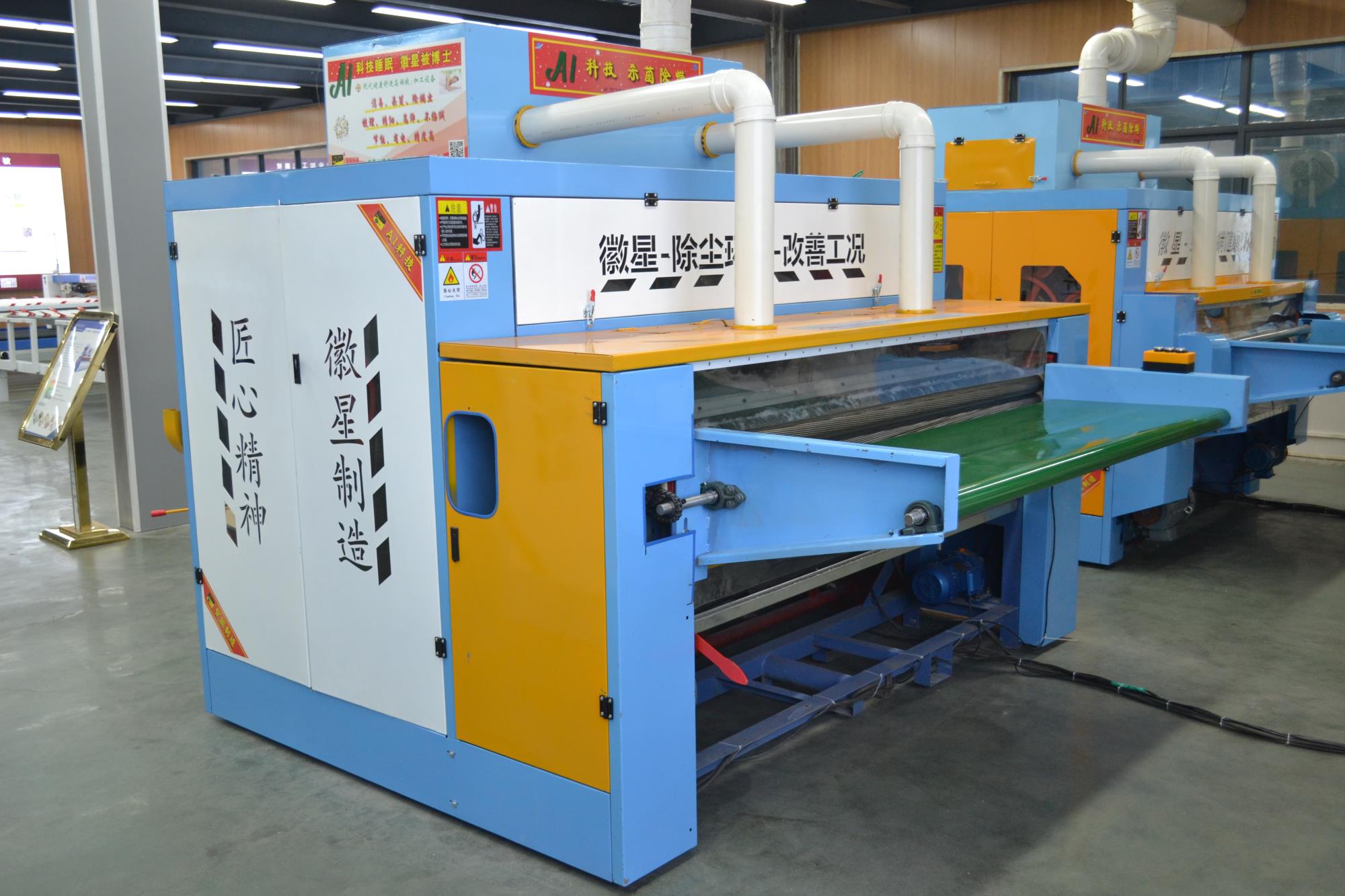產(chǎn)品簡(jiǎn)介:彈花梳理一體機(jī)高配款,可對(duì)棉被寬度自由調(diào)節(jié),為對(duì)用戶的生產(chǎn)帶來(lái)了方便,大功率排風(fēng)機(jī),高效的吸除落棉、飛花和粉塵的裝置改善了勞動(dòng)環(huán)境減少了紗疵該機(jī)排雜性能良好。彈花梳理一體機(jī)高配款已向優(yōu)質(zhì)、高產(chǎn)、低耗的方向發(fā)展,機(jī)流程簡(jiǎn)單易學(xué),分體控制柜,按鍵一鍵啟動(dòng),雙側(cè)羅拉采用全封閉設(shè)計(jì),防纏繞,不塞棉,不藏灰,低噪音,錫林工作輥采用上市公司原材,該機(jī)可隔機(jī)安全觀察,開(kāi)松四羅拉不抽花,雙雜亂。它配有雙吸塵系統(tǒng),除去棉花中的粉塵以及短絨,同時(shí)改善了工作環(huán)境。該機(jī)可對(duì)各種纖維、棉花、羊毛、駝絨、等原料開(kāi)松梳理,是生產(chǎn)棉被、羊絨被、絲綿被的機(jī)械。